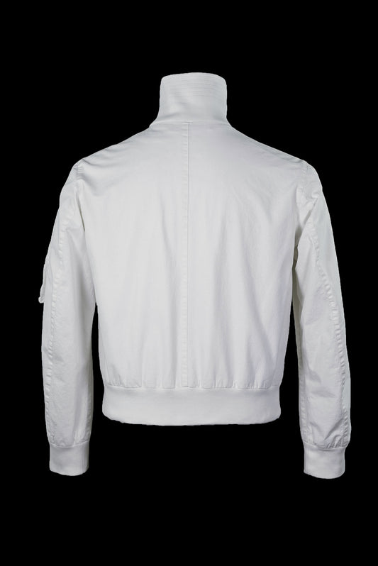 1999 Vintage Resinated Cotton High-Neck Bomber Jacket (Optic White)