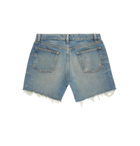 2005 Vintage Sanded Broken Denim Military Shorts with Metal Detail