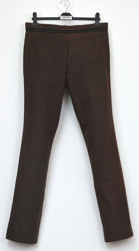 2002 Brown Double Cotton Jeans with Deconstructed Zip Waistband