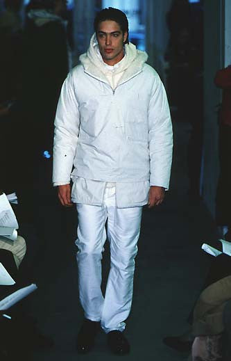 1998 was a very important year for Helmut Lang. The company relocated its offices from Vienna to Manhattan, making it the first fashion house to change continent, while the runway presentations move from Paris to New York. Later that year, helmutlang.com was launched and A/W 1998-1999 was the first fashion collection to be presented online. Besides these influential firsts, A/W 1998-1999 is seen as one of Lang's seminal collections, showcasing the first major exploration of the abstract and layered streetwear that became synonymous with his late 90s output. The main source of inspiration was contemporary military uniforms, which had been a recurrent theme in Lang's menswear since the decade's beginnings. Still, unlike previous seasons where the appropriation of military designs was straightforward and clear-cut, A/W 1998-1999 showcased a variety of unique garments whose aesthetic, detailing and execution are characteristically Lang.