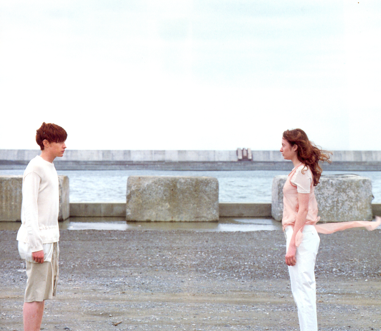 Following the collection's militaristic spirit, the sweater features an additional panel attached at the waist that extends below the hem to create an elongated layer reminiscent of parka coats. The design is precise and uncluttered with a tank top-like structure, a narrow straight body and a wide crew neck. The piece is crafted from a medium weight cotton knit in a simple stockinette stitch with minor colour variations that create a subtly grained effect. The chunky yarn is soft, stretchy and pleasant to touch. Conversely, the fine and lightweight cotton voile fabric of the extended panel moves beautifully when the piece is in motion, further accentuating the layered effect.
