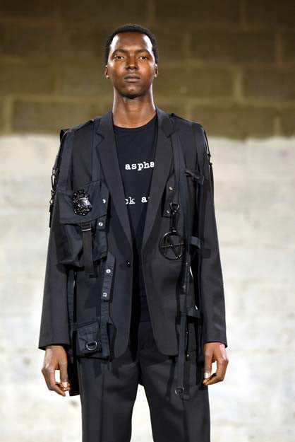 "Fashion collections which tackle quite political, controversial themes often tend to descend into a sort of hyperactive farce (with inevitable comparisons to the ‘Derelicte’ collection in the film Zoolander), but Simons manages the matter masterfully, first because the collection is underpinned by sharp tailoring, and second because he merely observes the matter of consumerism and does not take sides. Simons was interested in exploring how brand codes, logos, and corporate language have permeated mainstream culture and society, and how today’s youth have adapted; he also considers the risks of being consumed as we consume."