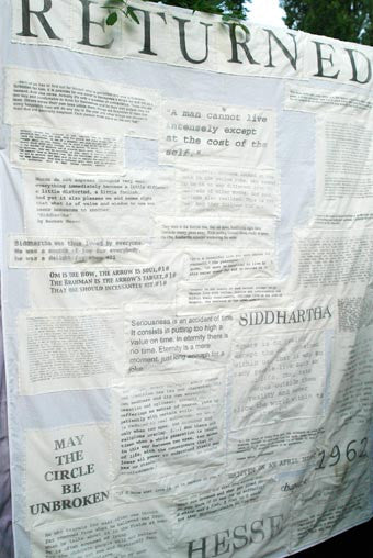 Simons explored cosmological beliefs and the quest for self-enlightenment for his S/S 2004 collection. Inspired by the works of Herman Hesse, the designer took a departure from his typical sartorial language, presenting abbreviated streetwear garments that were oversized to the extent where their original forms were obscured. In the process, their shapes were transformed into ethereal and flowing silhouettes that seemed to channel the draped garments worn by monks and priests of various cultures. Many of the pieces were decorated with religious imagery that highlighted the diverse ways enlightenment has been pursued across the world; this T-shirt features an ambiguous printed design that appropriates elements of Kabbalah, Hinduism, Thelema and possibly other religious doctrines.